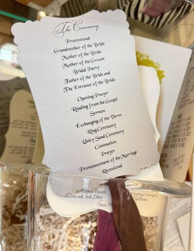 Our bespoke day-of details aren’t just practical—they’re part of the overall experience. Every menu, place card, and seating chart is an opportunity to extend the aesthetic of your event and infuse it with meaning, personality, and polish.